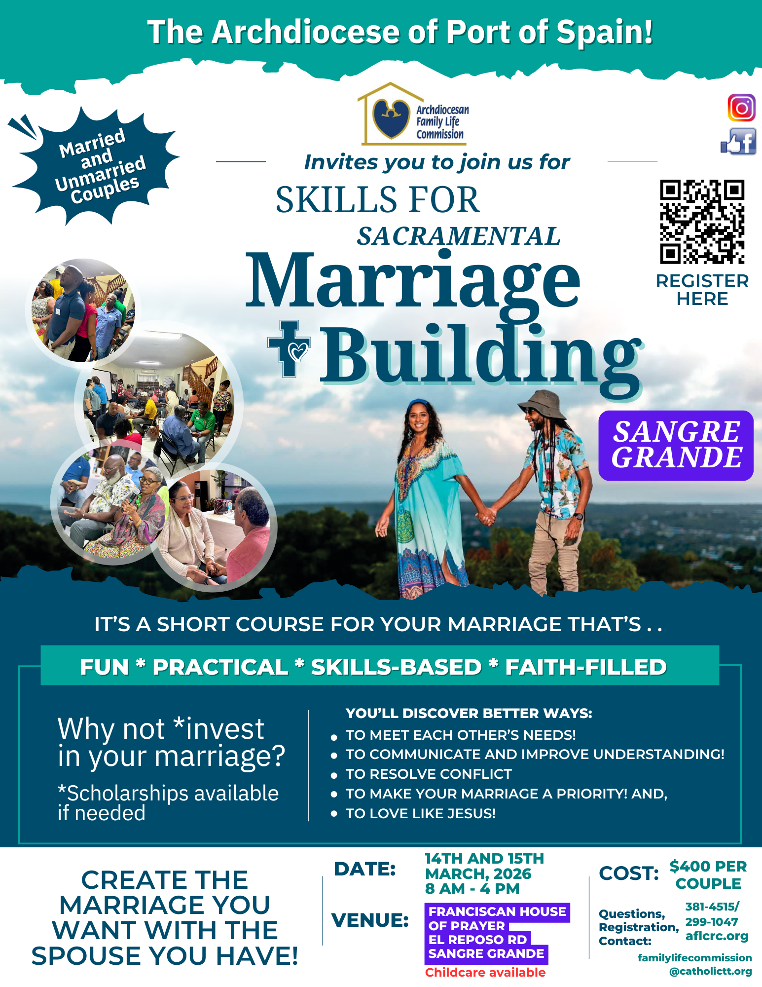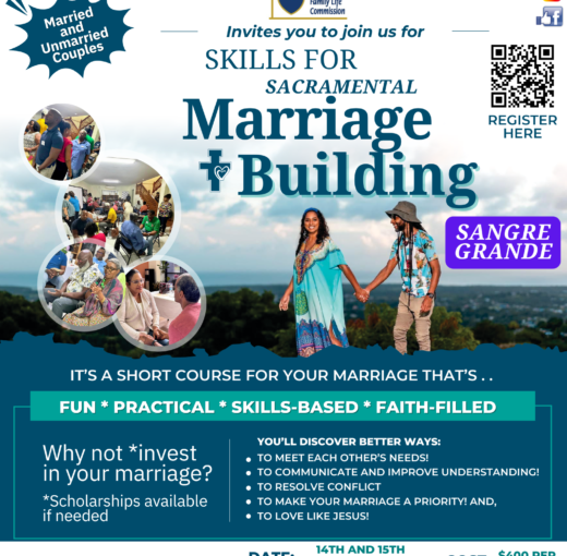 « All Events Sacramental Marriage Building – Sangre Grande March 14 @ 8:00 am - 5:00 pm Prev Event REGISTER HERE: https://bit.ly/SMB_Register Add to calendar Google Calendar iCalendar Outlook 365 Outlook Live Details Date: March 14 Time: 8:00 am - 5:00 pm Event Category: Weekend Retreat Website: https://bit.ly/SMB_Register Venue Sangre Grande Parish Hall Trinidad and Tobago + Google Map